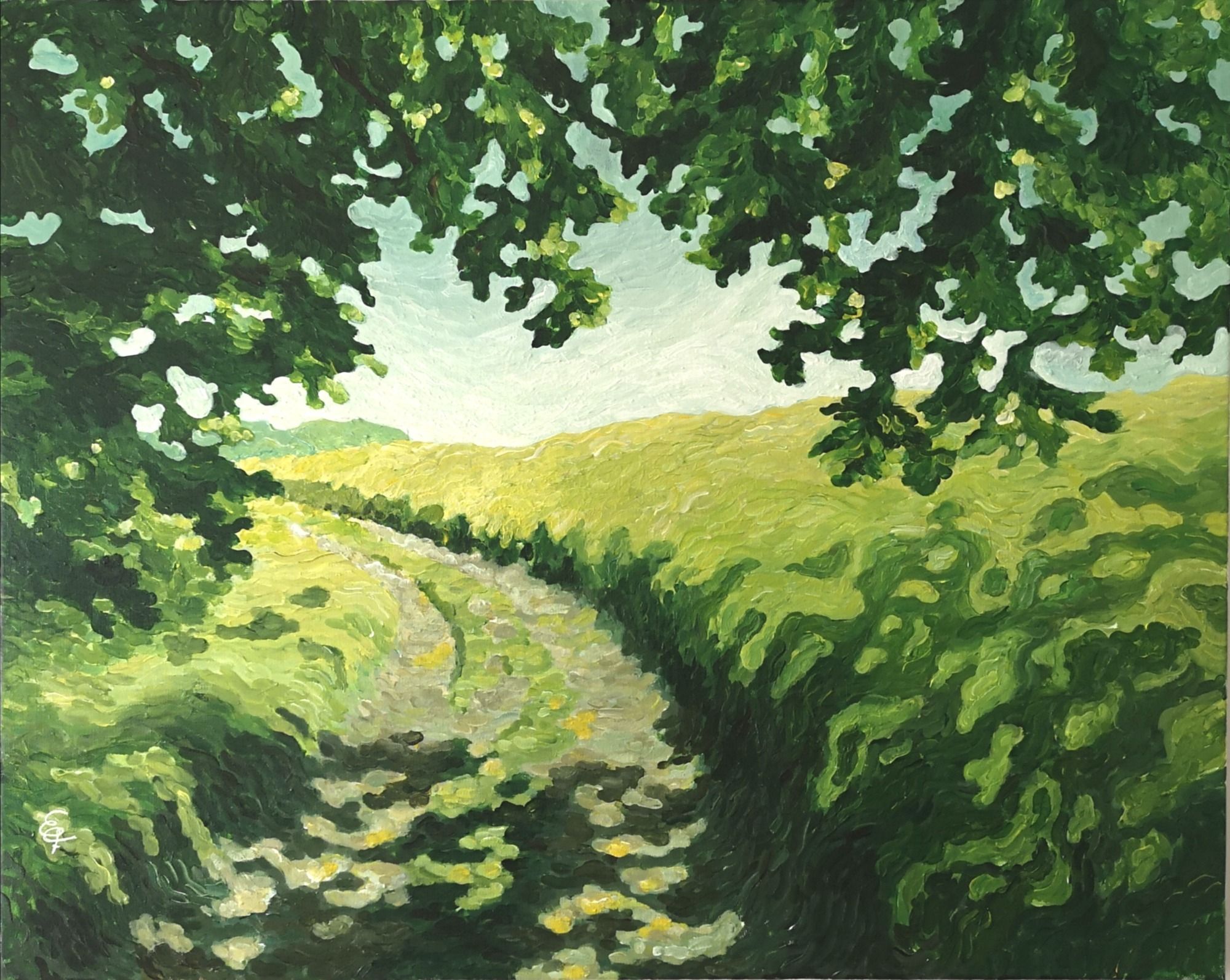 Hier inspieriert mich die satte Natur, die durch das Licht und die Farben für mich immer in Bewegung zu sein scheint.